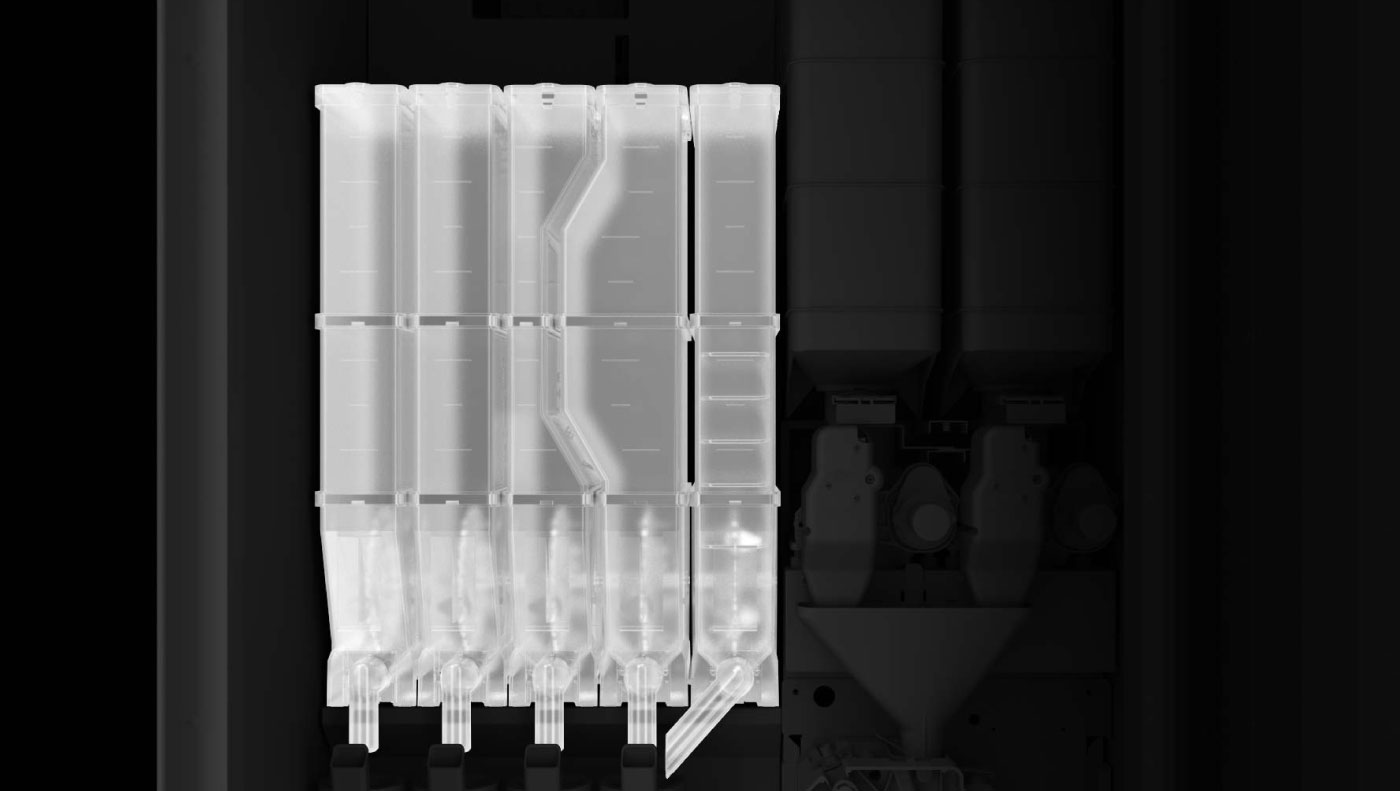 Bis zu 7 Behälter für beliebig viele lösliche Präparate